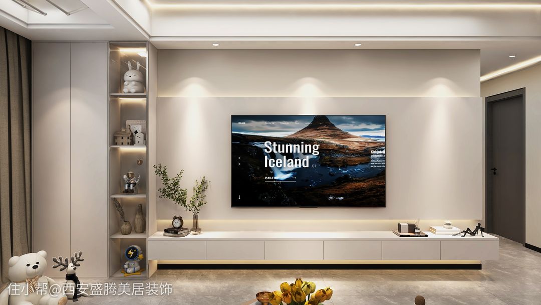 今天小編發(fā)的是2023年比較網(wǎng)紅款式的電視背景墻,懸空的電視柜,加上中部凸起的電視墻+上燈帶條,讓電視墻有著不一樣的簡約感,貼近當代人的優(yōu)雅風哈。